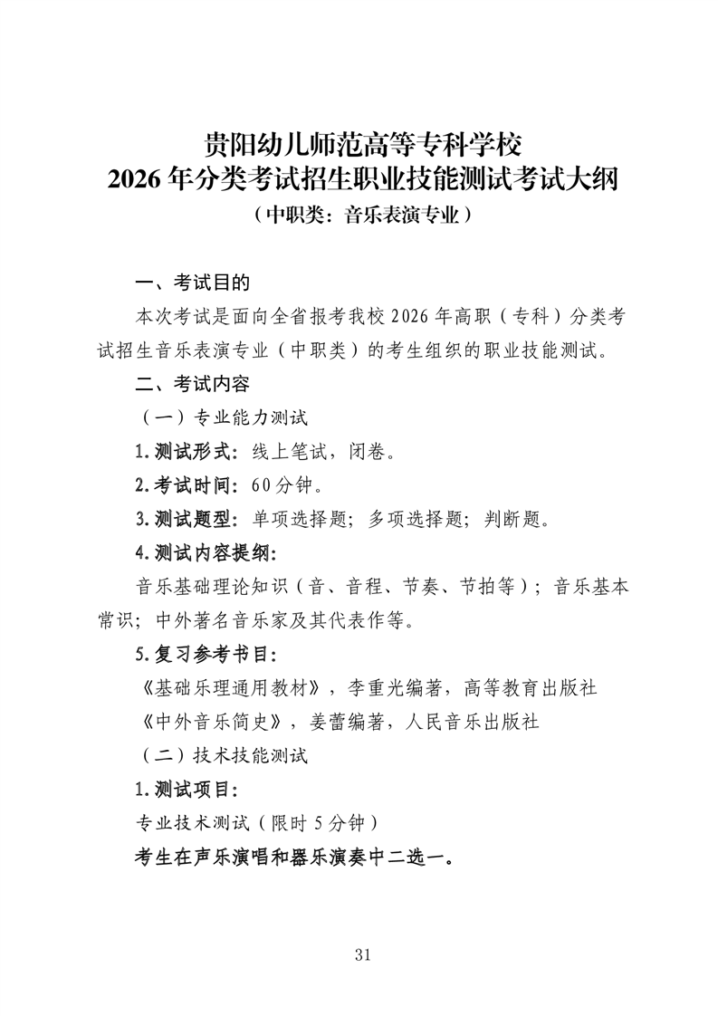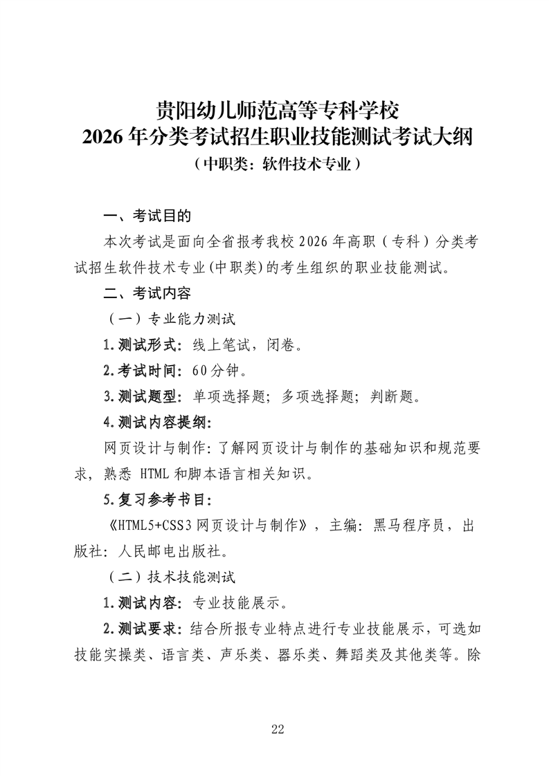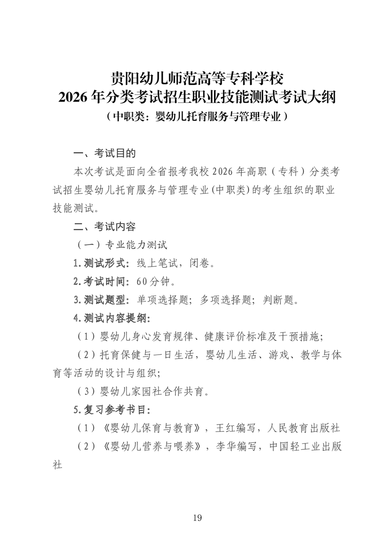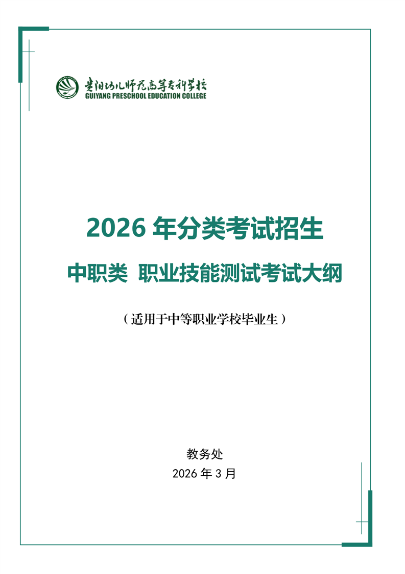 【中职类】贵阳幼儿师范高等专科学校2026年分类考试招生中职类职业技能测试考试大纲