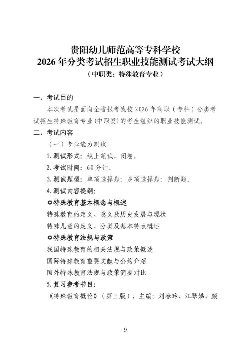 【高中类】贵阳幼儿师范高等专科学校2026年分类考试招生高中类职业技能适应性测试考试大纲