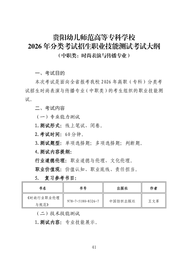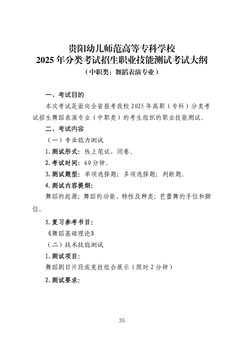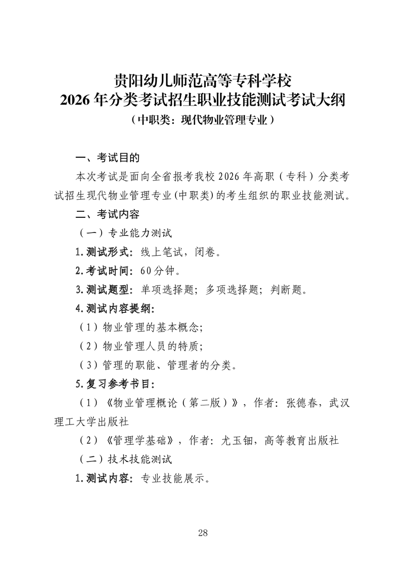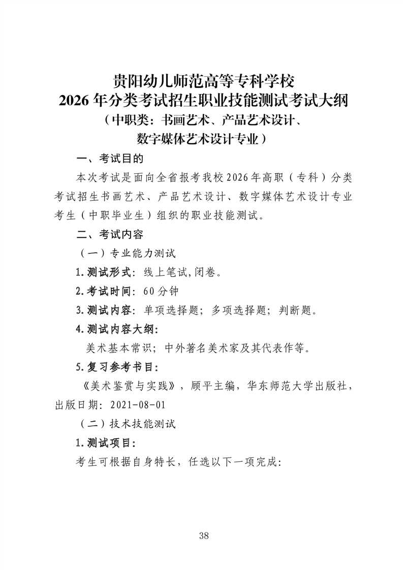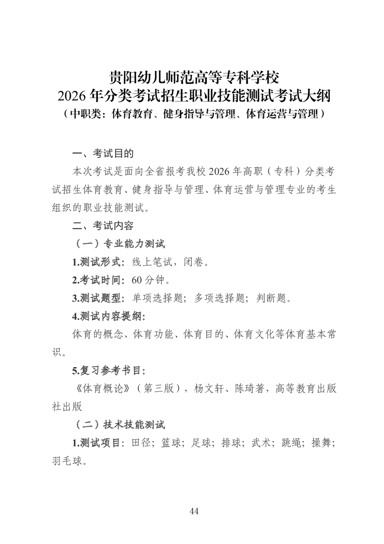 【专项类】贵阳幼儿师范高等专科学校2026年分类考试招生专项类职业技能适应性测试考试大纲