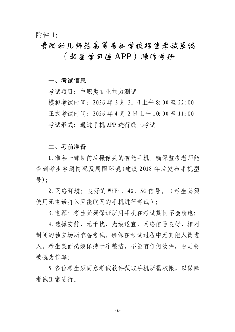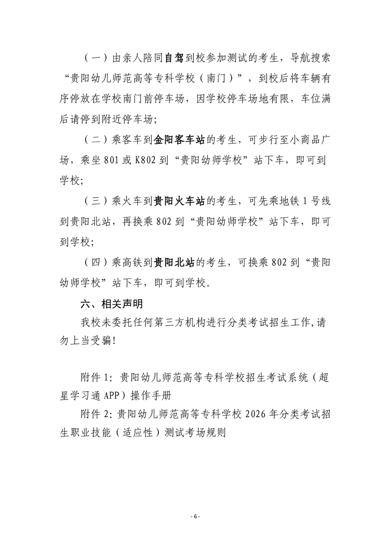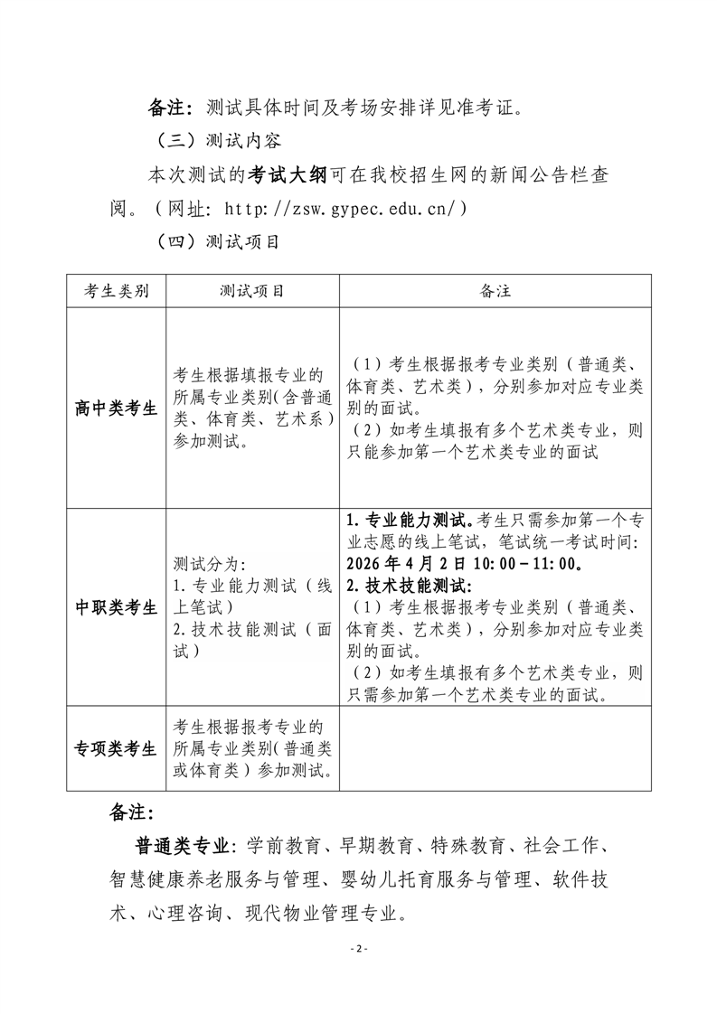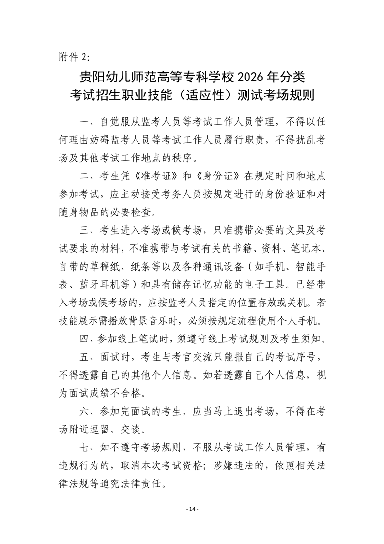 贵阳幼儿师范高等专科学校2026年分类考试招生职业技能(适应性)测试安排